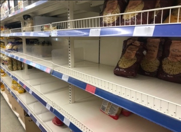 Аптеки вже не аптеки, а ФАПи далеких сіл. Іноді навіть елементарних ліків немає. Магазини порожні на ⅔. Наприклад, у "Веселці" (Радуга) овочевий відділ закрили, хімію я так і не застав відкритою, але кажуть працює. На полицях один товар займає метр місця, щоб приховати очевидний дефіцит. Хліб буває лише до обіду, вартість від 40 рублів. Яйця від 70, ковбаса від 400, дитячі памперси від 600 рублів за 12 штук. Якість всього — кошмар... Памперси після сну просто розсипаються на "кристали" з сечею, ковбаса нагадує собачу, що в АТБ була по 35 грн. Шинка правда нічого, але й ціна 600 рублів.