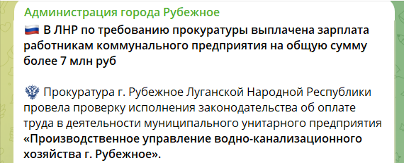 В окупованому Рубіжному заборгованість працівникам місцевого водоканалу сягнула 7 млн руб. Про це повідомляє Сватове.City.