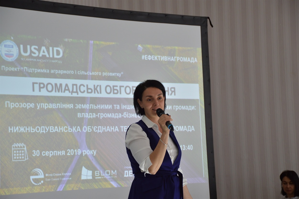 30 серпня у Нижній Дуванці пройшли громадські обговорення на тему «Прозоре управління земельними та іншими ресурсами громади». Це був заключний етап реалізації проєкту USAID «Підтримка аграрного і сільського розвитку», у якому брала участь Нижньодуванська об’єднана громада. В обговоренні взяли участь близько 50 людей.
